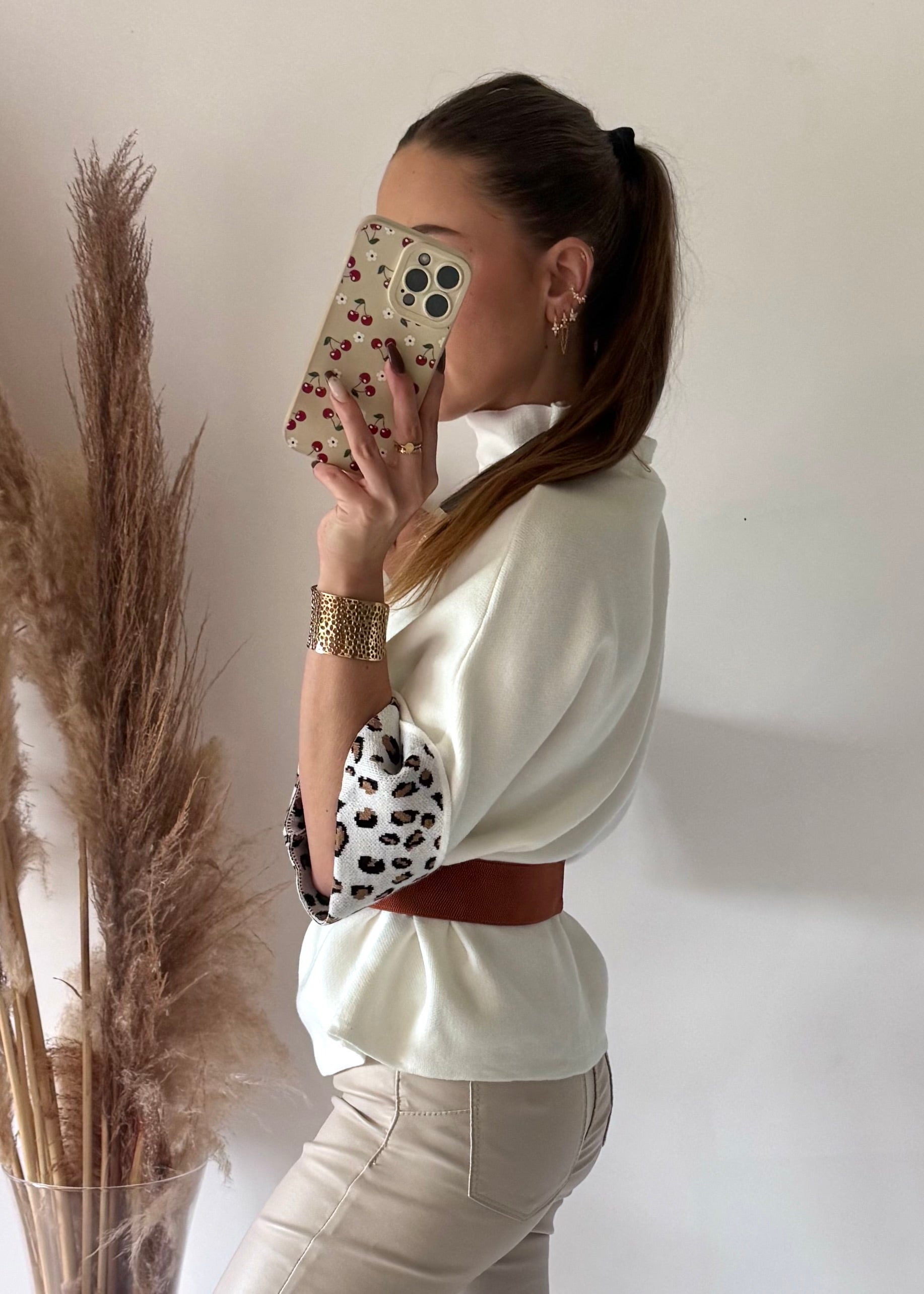 Le pull qui allie, confort et style avec brio. Son col montant apporte chaleur et élégance, tandis que les manches trois quarts revers léopard ajoutent une touche audacieuse et originale, parfaite pour se démarquer avec style. Sa taille unique convient aux morphologies du 34 au 42, alliant confort et féminité.