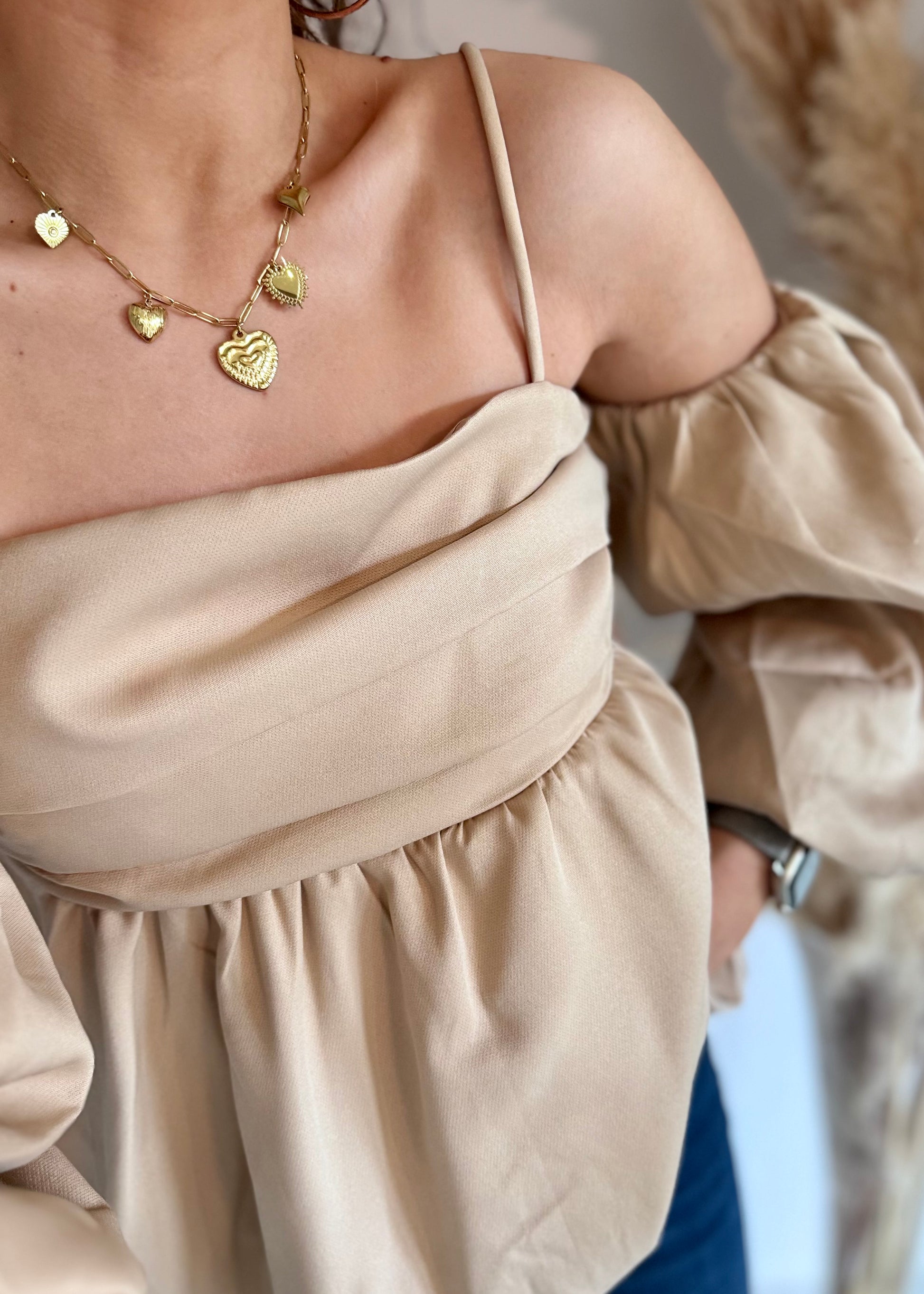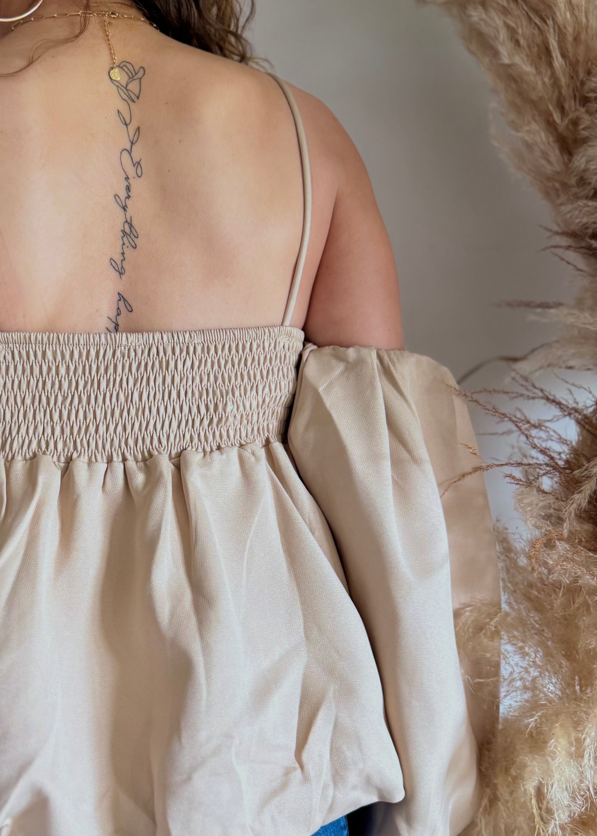 Ce top crème incarne la légèreté avec une élégance naturelle. Sa coupe large et fluide flotte autour du corps, tandis que ses manches bouffantes et ses épaules dénudées révèlent juste ce qu'il faut de peau. Les fines bretelles ajoutent une touche délicate, pour un contraste subtil entre volume et finesse. À porter avec un jean taille haute pour un look bohème-chic, ou glissé dans une jupe midi pour une silhouette plus romantique.